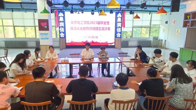 廉洁守初心,清风启新程。为深入贯彻落实习近平总书记关于加强作风建设的重大要求,进一步增强毕业生的法纪意识,加强责任担当,搭建毕业生与老师沟通交流的平台,6月12日,化学化工学院于翰苑餐厅二楼举办“2023届毕业生廉洁从业教育暨班团交流”餐厅沙龙活动,化学化工学院辅导员贾云超、赵艳敏以及2023届毕业生代表参加本次活动。