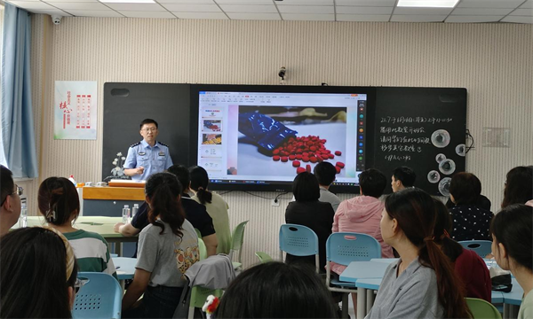 会上,山东省济东强制隔离戒毒所戒毒警察从国内目前禁毒形势、毒品定义分类、吸毒危害以及识毒与防毒四个部分展开宣讲,带领全体师生深入认识了解毒品,提升师生们对新型毒品的辨别能力和自我防范意识。