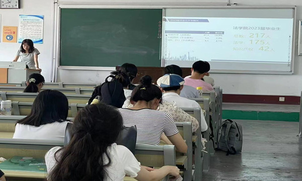 会上,刘洁、张雅琪分别向法学专业、知识产权专业学生分析了2023届毕业生就业、升学情况,结合个例细节对考研、保研和就业存在的问题提供经验借鉴和有效提示,叮嘱各位同学要树立正确的就业观、择业观,做到降低就业期望值、提升自身素质、适应严峻的就业形势,提前规划,准备好面对多线程任务。
