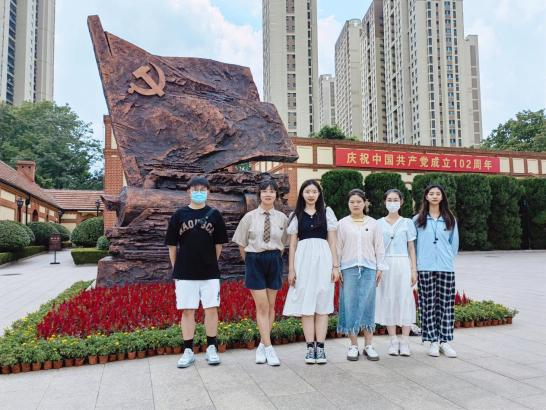 为追寻红色革命足迹,追忆红色峥嵘岁月,7月28日, 外国语学院红色记忆领未来服务队前往山东省青岛市,参观中共青岛党史纪念馆。服务队成员首先进入展厅参观,纪念馆中运用了大量的珍贵的历史照片,实物以及现代展示手段,展示了中国共产党青岛党组织在那段峥嵘岁月中前仆后继,不屈不挠的革命奋斗。随后服务队成员们参观了院内大型主题雕塑“引领”和党史主题公园,主题雕塑高54米,由飘扬的党旗和奔驰的火车组成。其中矗立着王尽美、邓恩铭、刘少奇、李慰农四位革命先辈的雕塑。成员们集体表示对革命英雄的最高敬意并行三鞠躬礼。参观结束后,共同书写了参观留言,外国语学院的学子会坚持学习革命精神、继承先辈遗志,让红色基因代代相传。