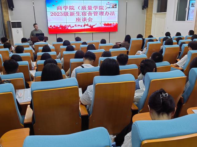 为了规范和完善新生宿舍管理,创造一个文明、舒适、安全、整洁、规范有序的住宿和学习环境,使23级新生更快地融入到新的集体生活中。9月5日,商学院(质量学院)于1#707开展2023级新生宿舍管理办法座谈会。商学院(质量学院)辅导员高鹏、2023级全体学生参加此次座谈会。