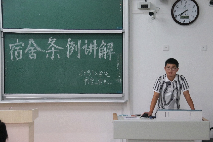 为规范宿舍管理,提高新生的安全意识和自我防护能力,进一步推进宿舍文明建设,9月17日,马克思主义学院于东6#C503举办宿舍内务细则宣讲活动。