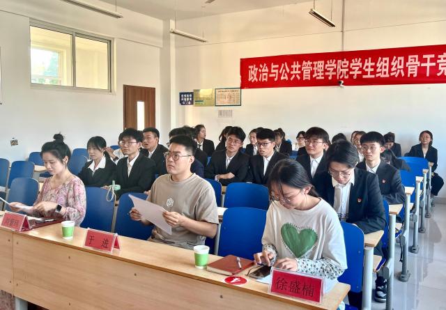 为保证学生会组织顺利换届,组建一支高质量学生团队,9月21日,政治与公共管理学院学生会组织竞聘面试于东6#c204教室开展,学院团委书记于进,辅导员徐盛楠、刘紫玮作为评委出席本次换届大会。