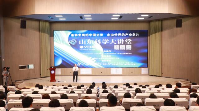 讲堂上,张宪玺以“蓬勃发展的中国光伏,走向世界的产业名片”为主题,围绕“中国光伏产业的发展历程”、“中国光伏产业的突出优势”、“中国光伏产业的应用领域”、“中国光伏产业的未来发展”四个方面展开讲解,向同学们科普了我国光伏产业的现状,并详细介绍了中国科学家、企业家在光伏产业领域进行的大胆尝试,鼓励同学们学习他们身上敢于尝试的创新创业精神,拓宽自己的思维、大胆创新。张宪玺结合图表向大家重点讲解了光伏产业在各个领域的广泛应用及未来的发展前景,将基础知识与前沿科技相联系,加深同学们对新兴产业的了解,并呼吁同学们关注中国光伏产业的发展,共同助力低碳环保,为实现碳达峰、碳中和提供中国方案。