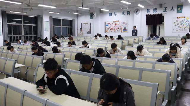 本次活动采取线上答题的方式,依托易班优课进行,题目形式包括判断、单选、多选,考试内容围绕学校、学院的各种规章制度及习近平新时代中国特色社会主义思想展开,涵盖大学生行为规范、违规违纪处理、日常生活管理、安全教育、现代化建设、“三农”问题、社会主义民主政治制度、新时代党和国家发展的目标任务等多方面知识。同学们准时进入考试地点,在工作人员引领下间隔就坐。考试过程中,同学们认真审题,从容不迫,严肃考纪,认真规范的进行答题,监考员及学校巡检同学尽职尽责地执行监考任务,维持考场纪律,为同学们创造了安静有序的考试环境。