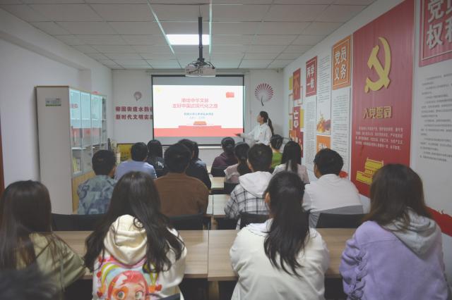 10月18日,聊城大学青年学生讲师团与聊城市机关事务管理局于东昌府区水韵社区联合开展“赓续中华文脉——走好中国式现代化之路”主题宣讲活动,讲师团成员王慧芳担任主讲人,部分聊城大学政治与公共管理学院学生及水韵社区群众参与此次活动。