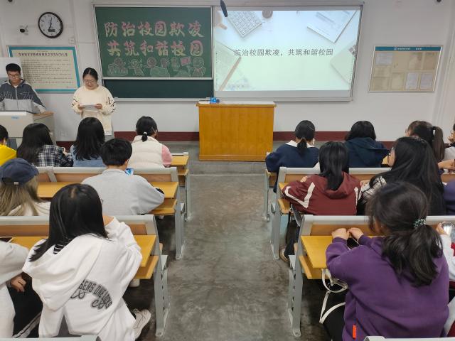 宣讲活动开始,宣讲员以山西省某双语学校发生的霸凌事件、玫瑰少年叶永志事件等为例,告知同学们校园霸凌的危害性。一组组触目惊心的数据,向同学们展现了施暴者内心最本质的想法,展现了校园霸凌的无理性、错误性。宣讲人员通过提问的方式,让同学们更深层次地思考面对校园霸凌,作为被霸凌者或旁观者应当如何处理的问题,让同学们设身处地、认真思考。宣讲者以有关校园霸凌的电影、书籍为例,告诫同学们无论其原生家庭对施暴者有何影响,都不可否认施暴者对受害者的身体和心灵造成了伤害,同学们绝不能对霸凌者产生同情心。宣讲人员向同学们解释了旁观者的三种类型,号召同学们绝对不要做漠视的旁观者,如遇碰到此类事情时,要通过联系老师等方式帮助受害者,绝对不要袖手旁观。宣讲者告知同学们,网络上的“被害者有罪论”是歪曲的思想,同学们应该认识到要敢于反抗霸凌者,及时求助他人。活动结束后,同学们纷纷表示会以更加包容的心态对待同学之间的摩擦,既不做矛盾的产生者,也不做矛盾的受害者。