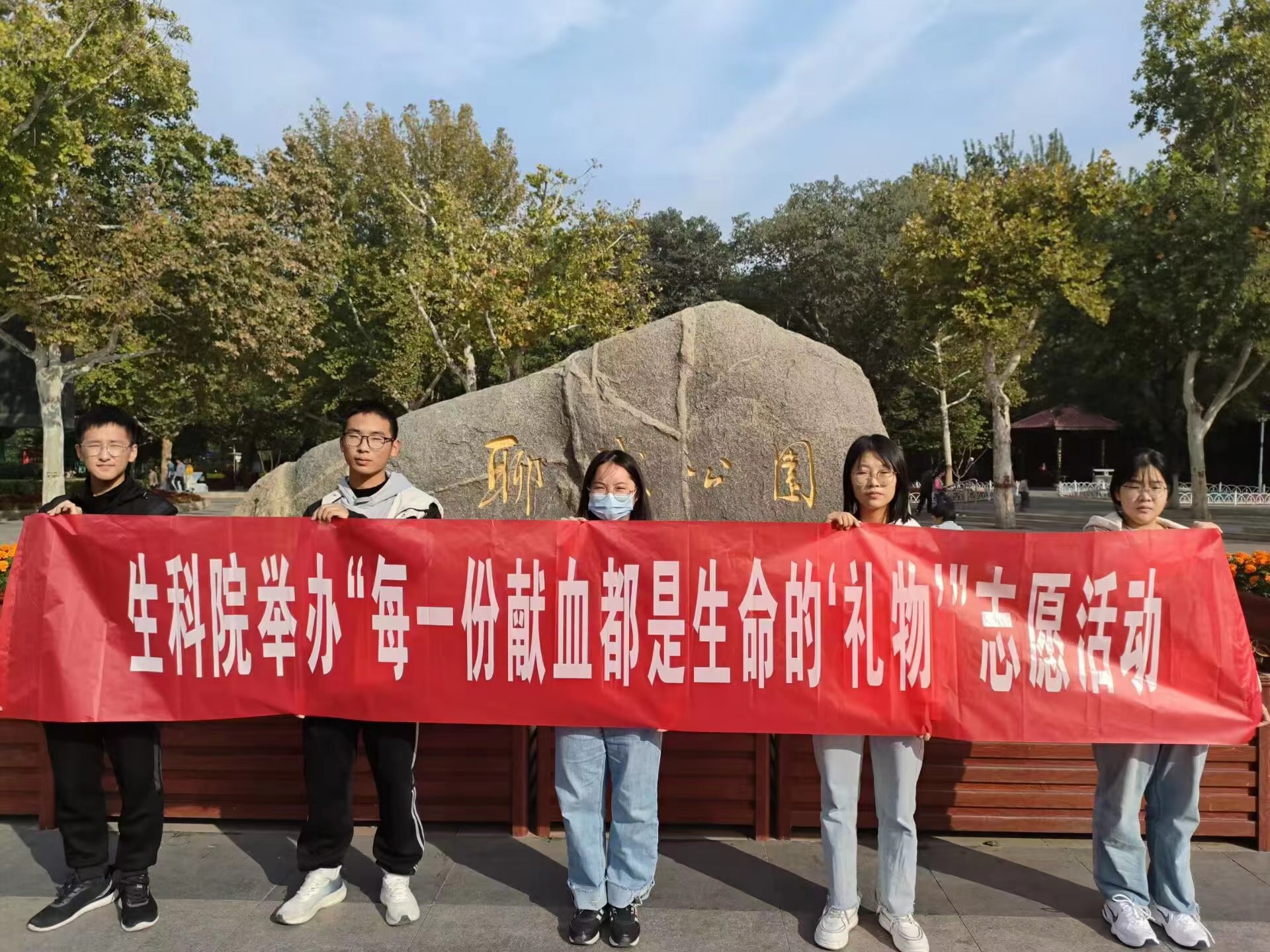 为增强市民们的社会责任感和奉献意识,帮助市民了解献血对于社会的意义,增强同学们的志愿服务精神,培养同学们对社会公益活动的热情,10月21日,生命科学学院于聊城市东昌府区人民公园举办“每一份献血都是生命的‘礼物’”活动。