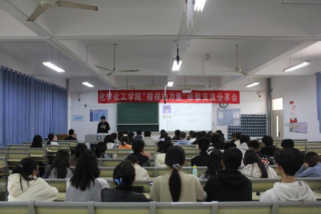 为进一步让同学们认清自我定位,找到人生方向,明确保研流程,更好地在青春之时向美好未来奋进,10月27日,化学化工学院于4B102举办“榜样的力量”经验交流分享会。本次活动邀请刘天赐、张文慧、吴永慧三位同学主讲。