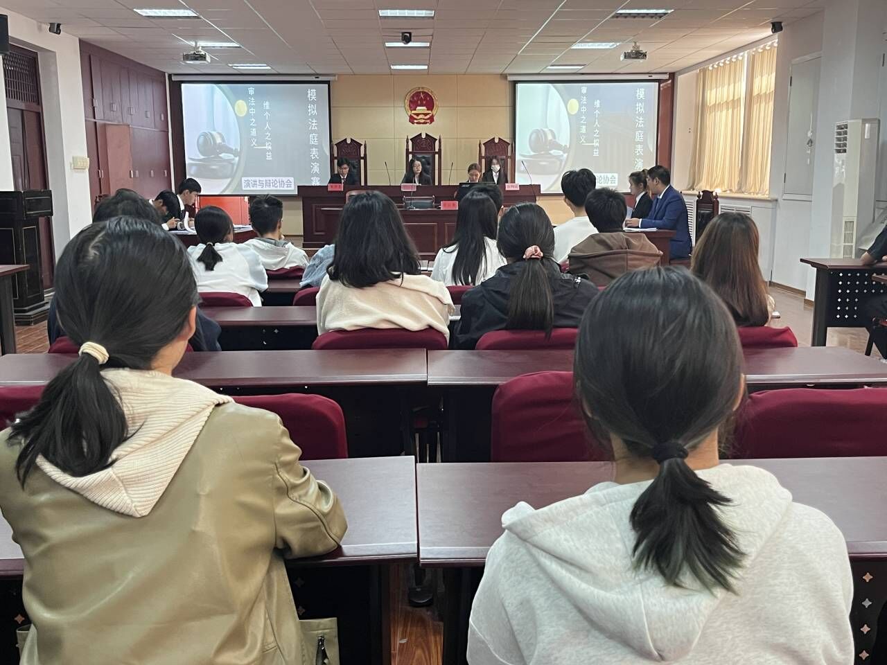 10月29日,法学院于西校区综合实验楼A907举办以“审法中之道义,维个人之权益”为主题的模拟法庭表演赛,法学院2023级部分学生参加此次活动。