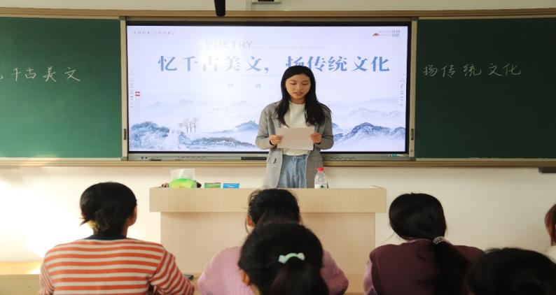 传千年之经义,燃万古之明灯。此次活动从“诗词的起源及发展历史、诗词的平仄韵路常识以及诗词的格式”三个方面为同学们讲解诗词相关知识,提高同学们对诗词的理解应用能力。随后,活动负责人带领同学们欣赏并学习著名传统诗词,并邀请在场学生分享自己最喜欢的诗词,感受诗词美韵,同学们热情高涨、跃跃欲试,展示出了深厚的文学功底。