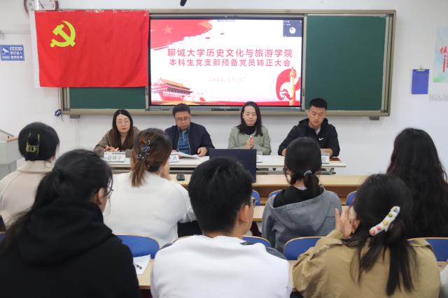 为加强党员队伍建设,增强党员队伍生机与活力,11月9日,历史文化与旅游学院于6#A302召开本科生党支部预备党员转正大会。学院党委副书记卢庆洪、本科生党支部书记石晓晗,辅导员辛超、薛晓宇出席本次会议。大会审议并表决通过吴钰莹等19名同志按期转正事宜。