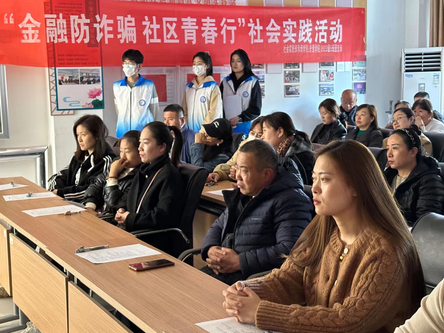 为提高社区金融安全意识,提升居民反诈能力,进一步落实“社区防金融诈骗”主题宣传,11月9日,商学院(质量学院)于聊城市东昌府区大胡社区党群服务中心举办“金融防诈骗,社区青春行”社会实践活动。商学院(质量学院)社会实践部负责人、2023级5班部分学生参加本次活动。