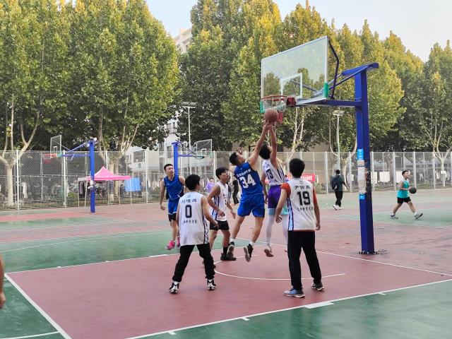 赛前,张金保为本次比赛开球,高高抛起的篮球点燃了比赛的激情,双方队员精神抖擞。同学们主动出击、以矫健熟练的动作迅速传球,直击篮板,教职工组也不甘示弱,投篮动作潇洒帅气,干净利落。比赛进程中,各位队员都全力以赴,运球、传球,配合默契,进攻、防守,行云流水,举手投足间展现了默契的配合和团结的力量。比赛高潮此起彼伏,扣人心弦,台下观众呐喊声也响彻整个赛场,加油鼓劲声一浪高过一浪。师生用自己的激情与汗水传达着对运动和生活的热爱,传递出友谊互助的团队精神。在观众的热烈欢呼声中比赛结束,教职工组以100:64的比分获得了最终胜利。最后,学生和老师们于篮球场合影留念,老师们再次向2023级新生表示了热烈欢迎,篮球赛在轻松愉快的氛围中落下了帷幕。
