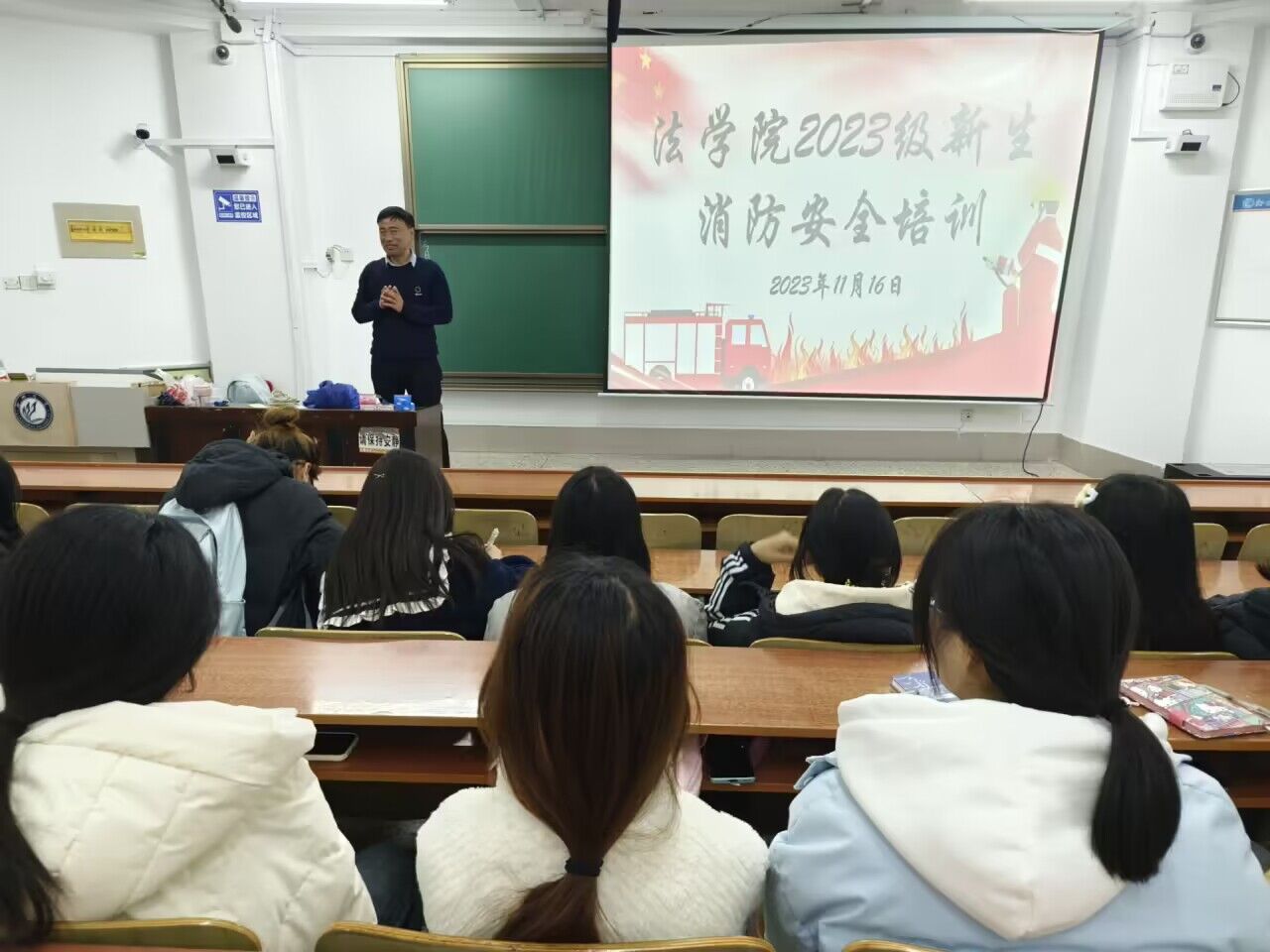 11月16日,法学院于西校区11#A110、11#C104举办2023级新生消防安全培训活动暨仿真灭火器现场操作演练活动,党委保卫工作部消防科秦正良科长担任本次活动主讲人,法学院辅导员时林超和2023年新入职教师出席本次活动,法学院2023级全体学生参加本次活动。
