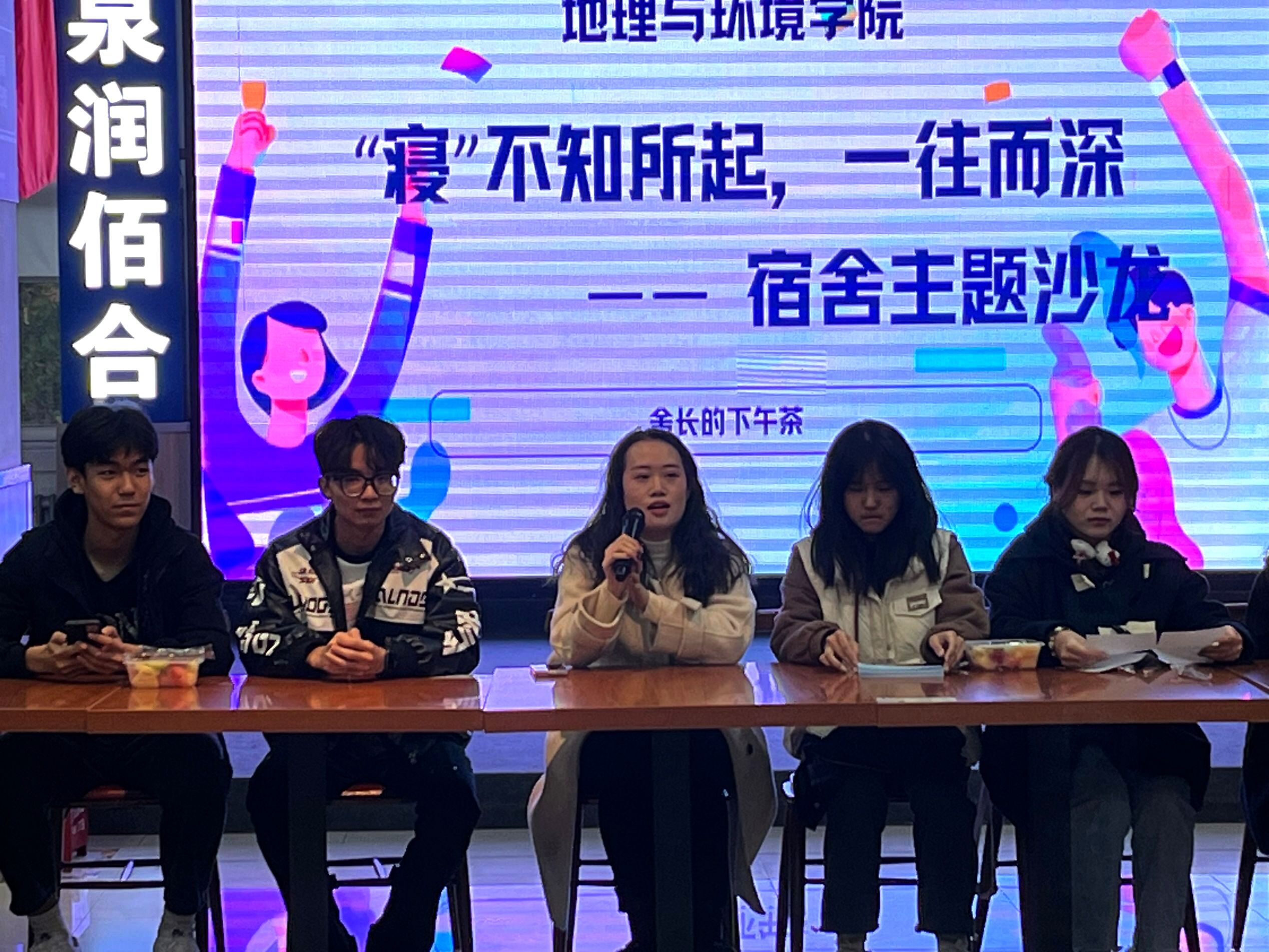为改善宿舍管理问题,增强宿舍管理与服务中心成员管理宿舍的能力,为学生营造良好的宿舍环境,11月16号,地理与环境学院于东校区翰苑餐厅二楼举办“‘寝’不知所起 一往而深”宿舍主题沙龙活动,辅导员孙淑慧参加了此次活动。