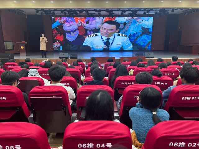 在观影活动开始前,李莹对《中国机长》这部影片的内涵和主题进行了深入讲解和分析。李莹指出,这部电影不仅仅是一部展现航空灾难的影片,更是一部传递爱国主义精神、弘扬民族自信心的作品。影片根据2018年5月14日四川航空3U8633航班成功处置特情真实事件改编,讲述了中国民航英雄机组在面对极端险情时,沉着冷静、勇敢智慧,成功保障了全体乘客的生命安全的故事。李莹总结道,希望同学们在观影后能在英雄机组身上学到热爱祖国、尊重生命、坚守职责的品质,并且将这种精神品质融入实际生活中去。观影时,同学们情绪随着电影情节的起伏而变化。当飞机遭遇强风和低温的挑战时,同学们脸上露出了紧张和担忧的神情;当机组人员最终成功地将飞机稳定着陆时,同学们也不禁松了一口气。机组人员在面对生死时表现出的勇敢和高度的责任意识深深打动了在场的观众,同学们被中国民航英雄机组力挽狂澜创造的民航奇迹所打动,也被全体机组成员无私无畏为旅客安全勇担责任的精神所感染,纷纷为机组人员所展现出的大爱鼓掌。活动结束后,同学们表示,这部电影所展现的“航空英雄谱”让大家重新认识了民航机组的工作,激发了自己的爱国主义情怀,坚定了理想信念,会在今后的生活和学习中努力向他们看齐,以实际行动践行爱国主义的价值观。