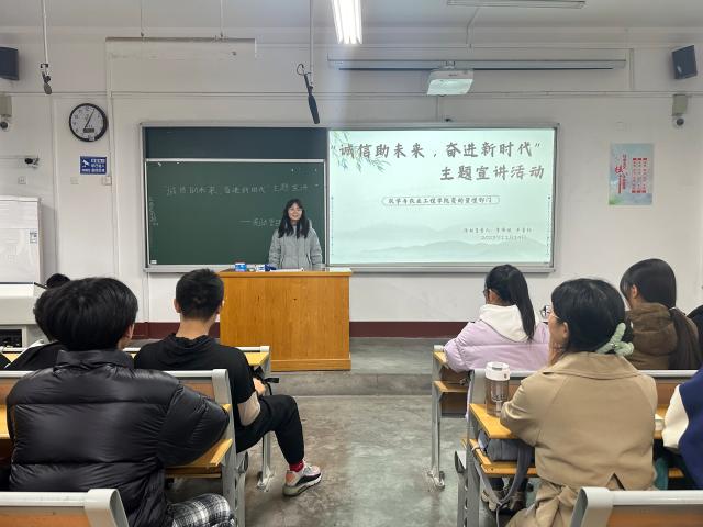 为增进同学们的诚信意识,提高道德水平,树立正确的价值观,11月23日,农学与农业工程学院于东校区2#708举办“诚信助未来,奋进新时代”主题宣讲活动。