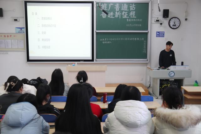 为响应国家推广普通话的号召,夯实语言文字工作基础,进一步提高普通话考试通过率,11月26日,马克思主义学院于东校区6#C503举办“推广普通话,奋进新征程”普通话培训活动,2023级学硕孔扬担任主讲人。