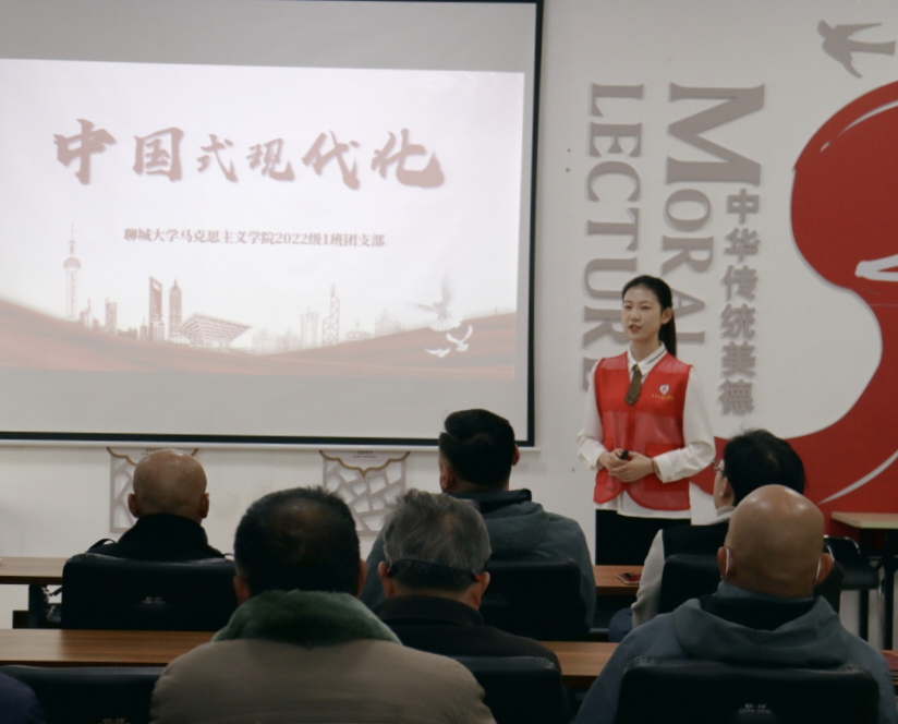 为深入学习贯彻党的二十大精神,进一步宣传习近平新时代中国特色社会主义思想,11月26日,马克思主义学院2022级1班团支部于东昌府区柳园社区开展“中国式现代化”主题宣讲活动。