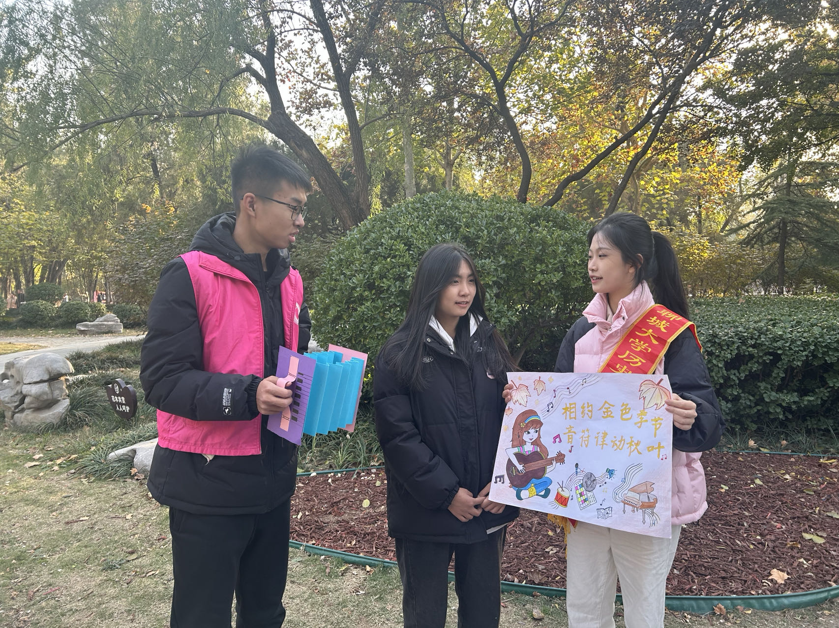 聆听秋日之音,感受音乐之美。为向群众介绍喜闻乐见的歌曲,引导群众领略音乐的魅力,促进群众音乐素养的提升,11月29日,我院于聊城市人民公园举办“相约金色季节,音符律动秋叶”活动。