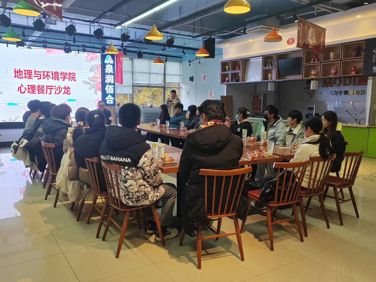 为提高当代大学生的心理素质水平,加强学生们心理健康教育,培养更加积极向上的心理健康状态,11月30日,地理与环境学院于东校区翰苑餐厅二楼举办了“知心识理 向阳生长”餐厅沙龙活动,地理与环境学院党委副书记、副院长张福善出席了本次活动。