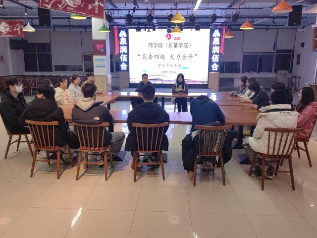 为了进一步加强学风建设,帮助同学们掌握学习方法,增强对英语学习的兴趣和自信心,有针对性的投入到英语四级备考中去,更好应对大学英语四级考试,12月4日,商学院(质量学院)于东校区翰苑餐厅举办“突击四级 火力全开”餐厅沙龙活动。优秀学生代表王向群、朱恒志参加了本次活动。