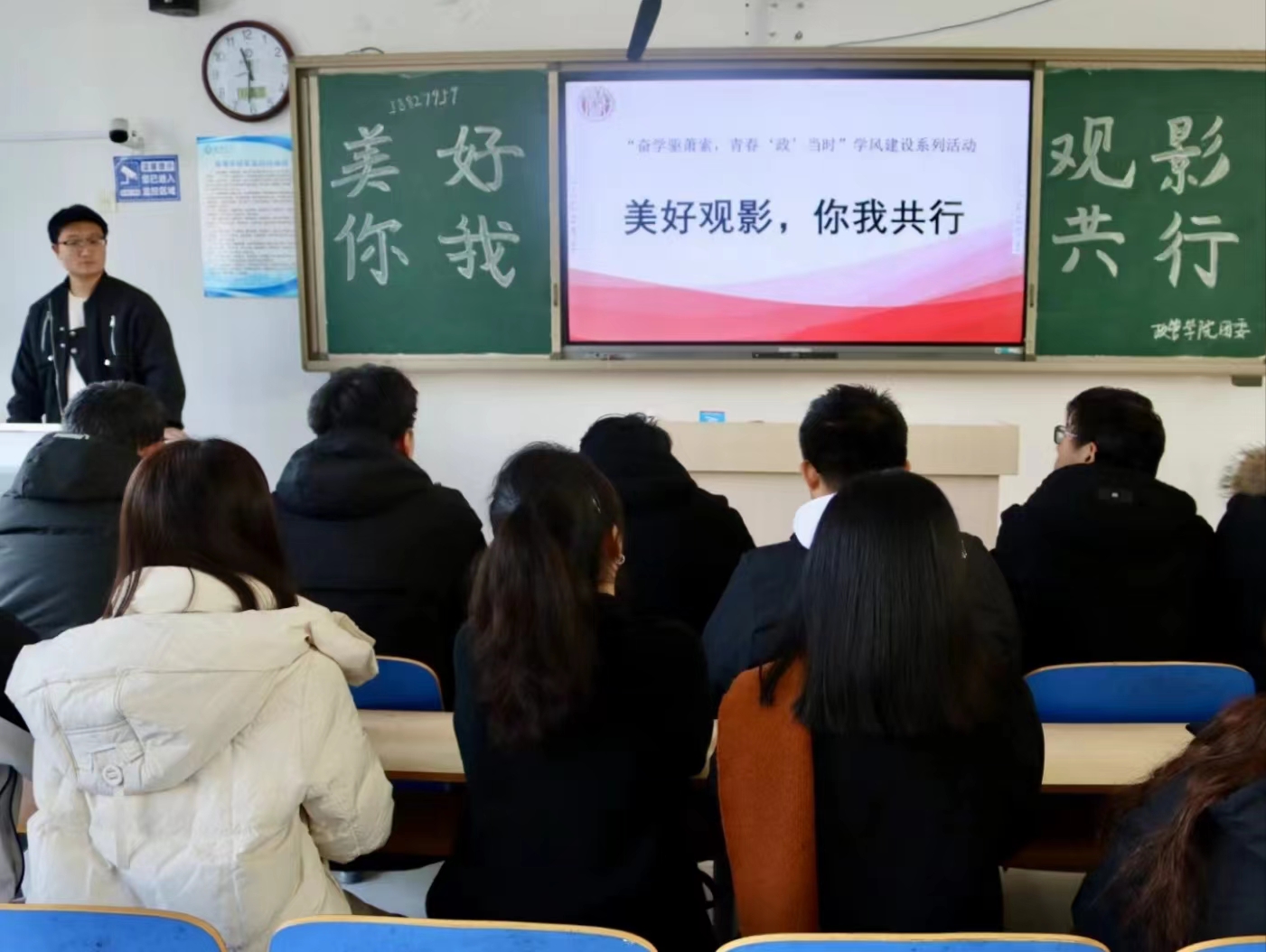 为传承和弘扬抗美援朝的伟大精神,深化爱国主义教育,12月3日,政治与公共管理学院于东校区6#C205举办“美好观影,你我同行”观影活动,政治与公共管理学院部分同学参加。