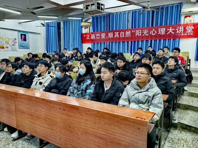 为帮助同学们建立正确的恋爱观念,学会正确处理恋爱过程中出现的心理问题。12月5日计算机学院于11号楼C104开展“正确恋爱,顺其自然”阳光心理大讲堂活动。本次活动由张红亚担任主讲人。