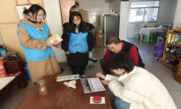 此次活动以学习老党员精神为重点,围绕送书入户、事迹分享、交流互动等环节展开,感悟党员精神,凝聚奋进力量。活动过程中,志愿者入户为老党员送上《习近平著作选读》《习近平新时代中国特色社会主义思想学习纲要》等书籍,老党员通过阅读学习习近平新时代中国特色社会主义思想主要内容、理论贡献。随后,老党员讲述工作中的典型事迹,表示将始终牢记党的性质和宗旨,履行好党员义务,并期望年轻党员不忘初心、砥砺前行,为新时代祖国建设做出贡献。交流互动环节,针对志愿者提出的关于老党员服务保障工作以及党员精神传承等方面的问题,社区工作者指出社区将通过定期走访联系机制加强对老党员的关怀,并将开展优秀党员先进事迹宣讲会,激励广大党员群众奋进实干,同时,志愿者表示老党员在带动居民参加活动、为社区工作建言献策等方面发挥着重要作用,法学院将持续开展走访慰问老党员系列活动,为老党员送上关怀与温暖。