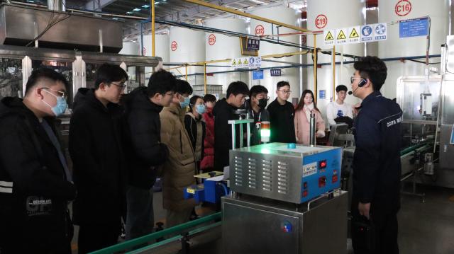 活动伊始,天泰集团人力行政部经理王磊带领同学们参观企业文化展板,从天泰集团党支部的建立、6S现场的管理、京瓷哲学等方面对天泰集团的发展历程展开叙述。随后,同学们走进奥吉星山东润滑油有限公司的工作厂区,进一步了解厂区环境及生产线,并进行了简单的实操。王磊介绍,奥吉星润滑油从建立之初一直秉持着“为国人做好油”的初心理念,经过全体员工的不断努力,现已初获成效。