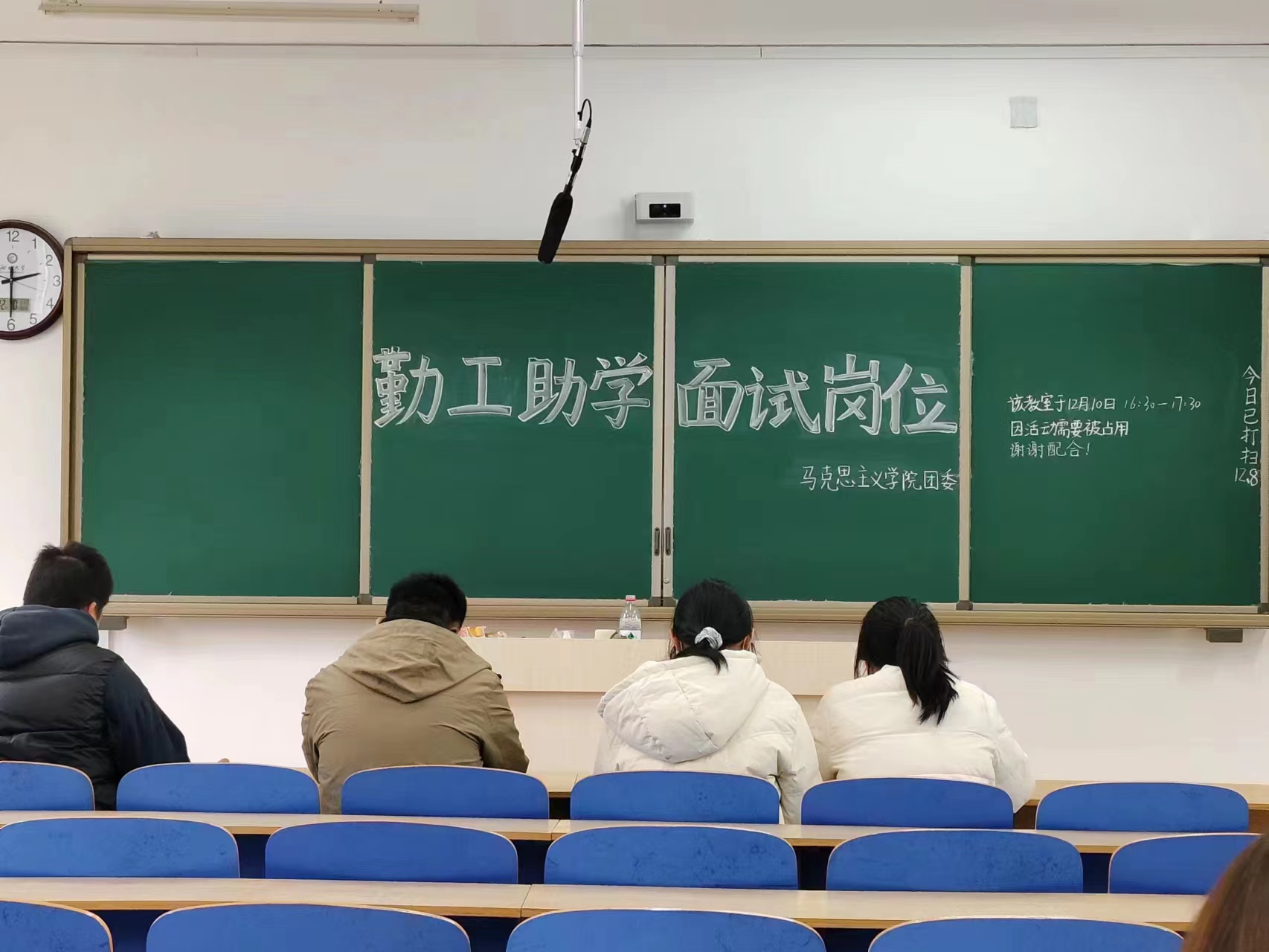 为更好地帮助家庭经济困难学生,培养学生自立自强的精神,12月10日,马克思主义学院于东校区6A#201开展2023年勤工助学岗位面试,资助服务中心主要负责人担任评委。