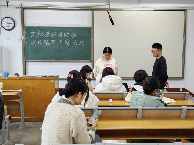 为让同学们感受魔方的魅力,进一步培养同学们的空间想象能力、创造性思维以及手眼协调能力,12月10日,农学与农业工程学院文体爱好者协会于东校区2#601教室举办欢乐魔方比赛活动。