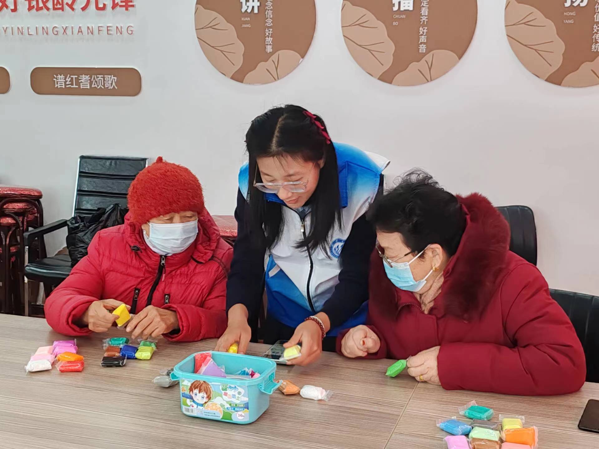 粘土虽小,创意无限。活动开始之前,志愿者们提前准备了各式各样的粘土材料,学习了多种粘土制作方法。志愿者们向老人们展示了搓、压、团、揉等粘土制作技法,从造型、色彩、装饰等方面拓宽粘土作品的制作思路。老人们认真倾听志愿者们的讲解,充分发挥他们的想象力,将粘土制作成活灵活现的精美作品。志愿者们积极与老人们进行沟通交流,了解他们的日常生活和心理状态,为他们带去精神上的慰藉。老年人脸上洋溢出幸福的笑容,他们对志愿者的热情行为与有爱品质表示赞扬,充分肯定了志愿者们的工作。活动结束以后,志愿者们纷纷表示,在今后的学习生活中,要充分践行大学生“德、智、体、美、劳”全面发展的理念,加强对老年人的关心和照顾,营造崇老敬老的社会氛围。