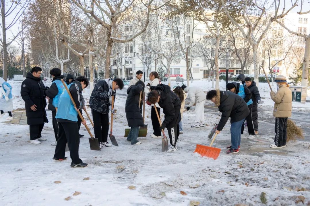 以雪为令,担当在肩。本次扫雪活动的顺利进行,有效地解决了师生出行不便的问题,保障了师生的出行安全和便利,使校园环境变得更加整洁,展现了大家的团结精神和责任感,也进一步弘扬了校园文明精神,志愿者们吃苦耐劳和团结协作的精神为冬日的校园增添了浓浓的暖意。