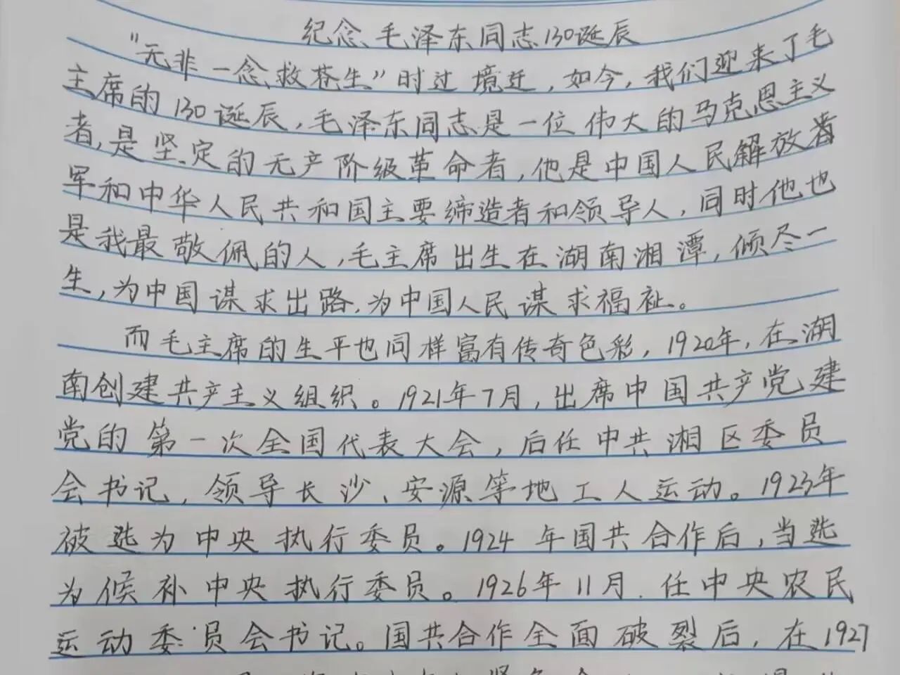 为增强学生的人文素养,培养学生的社会责任感和使命感,激发学生的爱国情怀,12月21日,药学院于线上举办了“纪念毛泽东诞辰130周年”主题征文活动,2022级、2023级部分学生参与其中。
