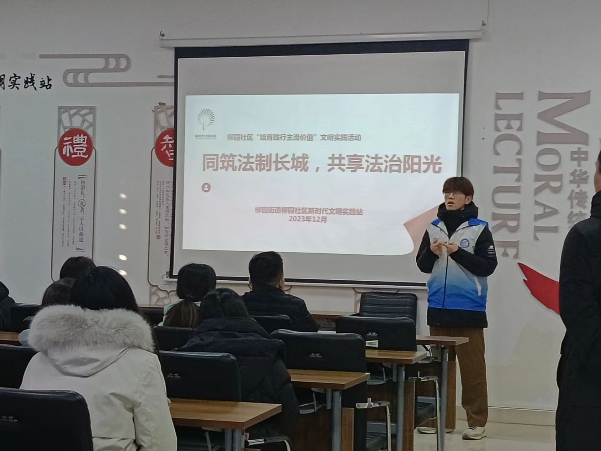 为进一步提升社区居民法治素养,强化群众法律意识,提高居民依法办事的能力,12月21日,商学院(质量学院)于聊城市东昌府区水木清华社区举办“同筑法制长城,共享法治阳光”社区实践活动,2022级7班部分同学参加了此次活动。