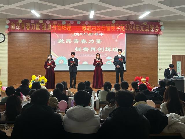 12月25日,政治与公共管理学院于东校区6#C106举办“激扬青春力量,挺膺再创辉煌”2024年元旦晚会,政治与公共管理学院部分教师和学生参加。