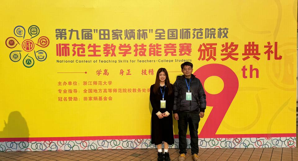 2023年12月30-31日,第九届“田家炳杯”全国师范院校师范生教学技能竞赛决赛在浙江师范大学举行。在外国语学院教师教育与实践中心主任孟令新、副主任李艳芹的带队参赛中,我院2020级3班英语(师范)专业的张盈同学获得小学教育综合组全国二等奖。