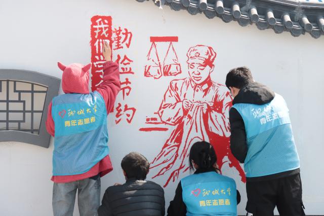 用画笔描绘爱心,用歌声传递温暖。同学们带着一颗热爱公益的心,踏上了学雷锋的征程,活动以“弘扬雷锋精神,描绘大美乡村”为主题,分成两组同时进行,一组同学绘制墙绘,一组同学参与文艺演出。参加墙绘绘画的同学们分成六小组,每个小组分工明确,互相协助,他们用心描绘,用爱填充,将雷锋精神融入每一笔每一画中,让墙绘成为了一道美丽的风景线,在弘扬雷锋精神的同时将艺术融入乡村生活,以志愿服务力量助力乡村文化振兴。