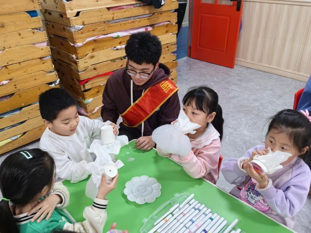 活动伊始,志愿者播放关于化学实验的科普视频,用通俗易懂的语言为小朋友们讲解“彩虹搭桥、水中星球、不会湿的纸巾、遇水开花、彩虹泡泡”等实验的原理、操作步骤和注意事项,从科学的角度揭秘神奇的化学反应,充分调动小朋友们对于化学实验的好奇心。随后,志愿者将一次性纸杯、彩笔、橡皮筋、洗脸巾、洗洁精水等材料分发给小朋友,引导他们用橡皮筋固定洗脸巾,帮助小朋友们在洗脸巾上涂上他们喜欢的颜色,最后沾取洗洁精水,吹出彩虹色的泡泡。活动结束后,孩子们纷纷表示受益匪浅,通过本次活动自己学习到了很多实验技巧,真实感受到化学实验的魅力,今后将所学的化学知识应用于生活实际当中。