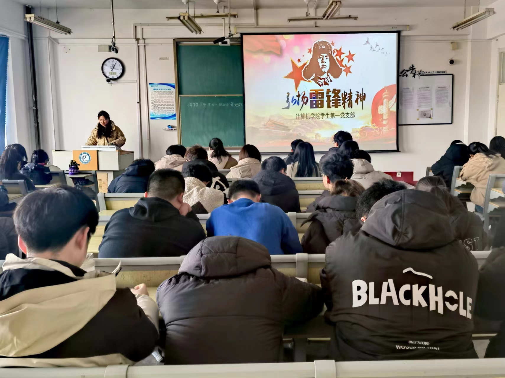 为了弘扬雷锋精神,倡导奉献、友爱、互助的社会主义核心价值观,帮助同学们能够在学习、考研等方面更好地成长,3月8日,计算机学院学生第一党支部和心理部在10#C427共同举办了“雷锋精神之光”朋辈辅导活动。