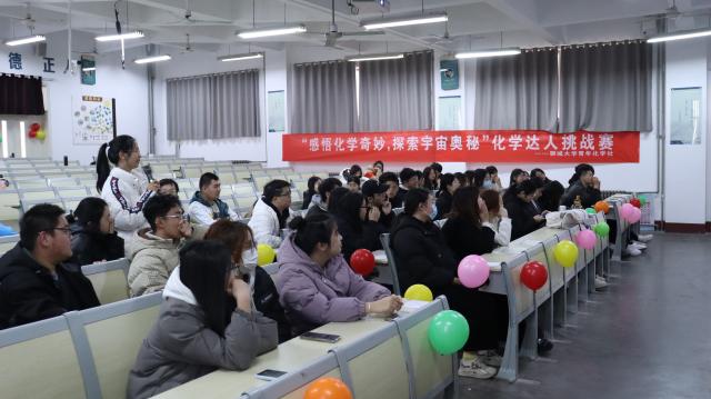为加强同学们对化学学科的热爱,让同学们在轻松愉快的氛围中培养对化学的学习兴趣,3月10日,化学化工学院青年化学社于东校区4#C205举办“感悟化学奇妙,探索宇宙奥秘”化学达人挑战赛。