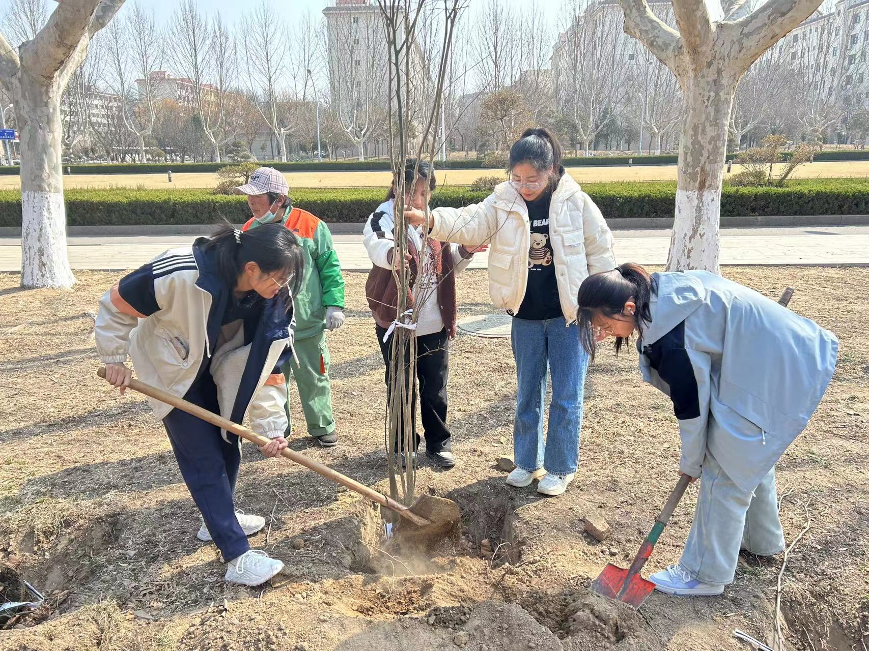为美化校园环境,提高大学生的生态意识,增强对环境保护的责任感,3月13日,马克思主义学院于东校区逸夫图书馆前举办“春风拂暖催新绿,三月植树正当时”植树节主题活动,2023级3班班主任孟爱玲参加。
