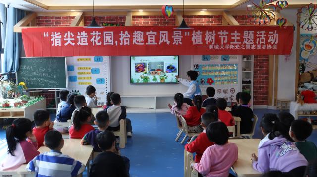 为加强小朋友们对植树节的了解,增进他们对生态文明观念的认识,3月14日,化学化工学院阳光之翼志愿者协会于牛津国际聊城孟达幼儿园举办“指尖造花园,拾趣宜风景”志愿服务活动。