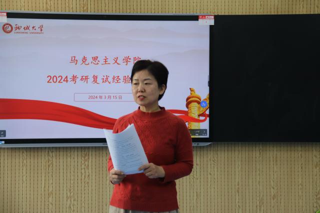 为帮助考生更好地备战复试,缓解备考压力,提高复试通过率,3月15日,马克思主义学院于东校区6#A206举办2024考研复试经验交流会。硕士生导师孟宪霞、23级专硕徐玉莹、学硕李薇担任主讲人,会议由辅导员李雨桐主持,2020级部分本科生参加。