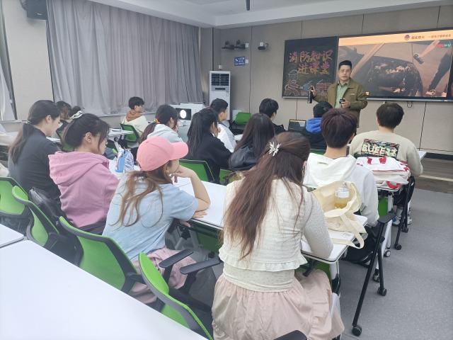 随着城市化进程的加快,人口密度和建筑物密集度不断提高,火灾风险也随之增加。为了让同学深刻了解火灾的突发性和火灾造成的严重危害,活动开始后,侯学通分享了不同类型的火灾案例以及受灾人员逃生方式的科普视频。视频结束后,侯学通从“消防知识、消防意识、消防工具”三个方面展开了本次讲解。“家住高层,发生火灾后同学们本能反应是向哪个方向逃生?”“遮掩口鼻的湿毛巾要叠成几层?”侯学通采用随机提问的方式,简单了解同学们对消防知识的掌握情况,结合具体案例,利用幽默风趣的语言纠正同学们的错误认知,并向同学们普及基本消防安全知识。在介绍消防工具的活动环节,侯学通亲身示范,使同学们直观地了解到灭火器、灭火毯的重要作用,鼓励同学们配备基本的消防工具,保障自身安全。活动现场氛围轻松愉悦,同学们认真听讲,做好记录。同学们纷纷表示:“此次活动令我们受益匪浅,我们要时刻把消防安全记在心上、扛在肩上,用实际行动营造平安的校园环境。”活动最后,侯学通向同学们发放消防安全知识手册,并提醒同学们认真研读,做到居安思危、学以致用。