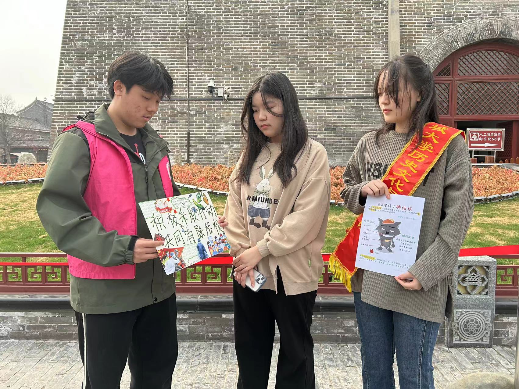 关爱生命,共抗结核。为提高群众对肺结核疾病的了解,践行“人民至上,生命至上”的理念,营造健康的社会氛围,3月21日,历史文化与旅游学院于聊城市古城社区举办“积极采取行动,共同消除结核”活动。