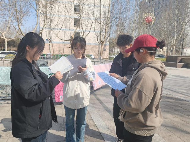 活动负责人孙源源介绍活动的背景和目的,强调红色记忆的重要性以及传承红色精神的必要性,鼓励参与者增强历史责任感和使命感,积极参与红色文化传承活动。孙源源从红色记忆、红色故事、红色精神三个方面详细说明传承红色记忆对现代社会的重要意义,并要求参与者将红色记忆融入日常生活,将红色精神内化于心、外化于行。活动过程中,参与者对卧龙广场周边人员进行问卷调查,调查同学们对红色精神以及红色故事的了解程度。调查结束后,孙源源组织参与者分享调查结果,参与者王梦洁指出同学们对当代红色文化的传承情况乐观,从学习红色文化的频率上来看,同学们经常观看红色题材作品,阅读红色书籍,对红色文化有一定了解。孙源源总结活动,再一次说明传承红色记忆对大学生的重要性,希望参与者能够在日常生活中积极践行红色精神。参与者潘浩杰表示,在当今时代,面对各种挑战和机遇,大学生更应该牢记历史、珍惜当下、展望未来,积极参与学习红色知识。