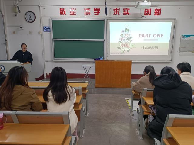 爱情作为人类情感的重要组成部分,既是人们生活的调味剂,也是心灵成长的催化剂。活动开始,赵汝艳向同学们展示了一些自测题目,并组织同学们进行测试,以评估同学们在爱情心理上的成熟程度。随后,赵汝艳根据评估结果,围绕“爱情心理的基本概念、错误的恋爱心理影响、追求爱情的正确态度”三方面展开论述。赵汝艳为同学们讲述了大学生爱情的种类和恋爱心理,以及大学生恋爱存在的问题及解决方式,并向同学们详细讲解面对恋爱挫折时,应如何正视现实、换位思考、宣泄感情和升华自我,引导同学们正确对待恋爱中的得与失,树立正确的恋爱观和爱情观。活动现场气氛热烈,同学们主动提问,做好笔记,积极参与互动。赵汝艳针对同学们存在的错误心理认知,如“女生的心思不好猜”和“男生都是花心大萝卜”进行了逐一纠正和解读,并表示:“面对爱情要坦诚相待,敞开心扉,打破固有心理防线。”活动最后,同学们纷纷表示,此次阳光心理大讲堂帮助自己培养了爱情中的自我保护意识,建立了积极向上的健康心态,有利于同学们正确认识爱情中可能面临的困惑和挑战。